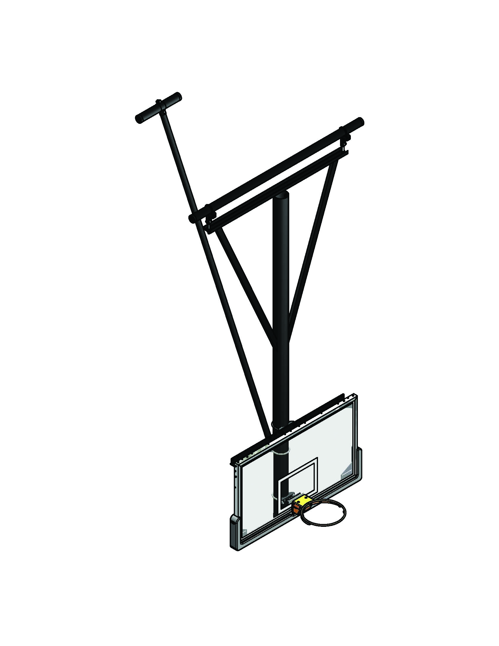 Bent Single Post Rear-Braced Rear-Folding Ceiling Hung Basketball Backstop