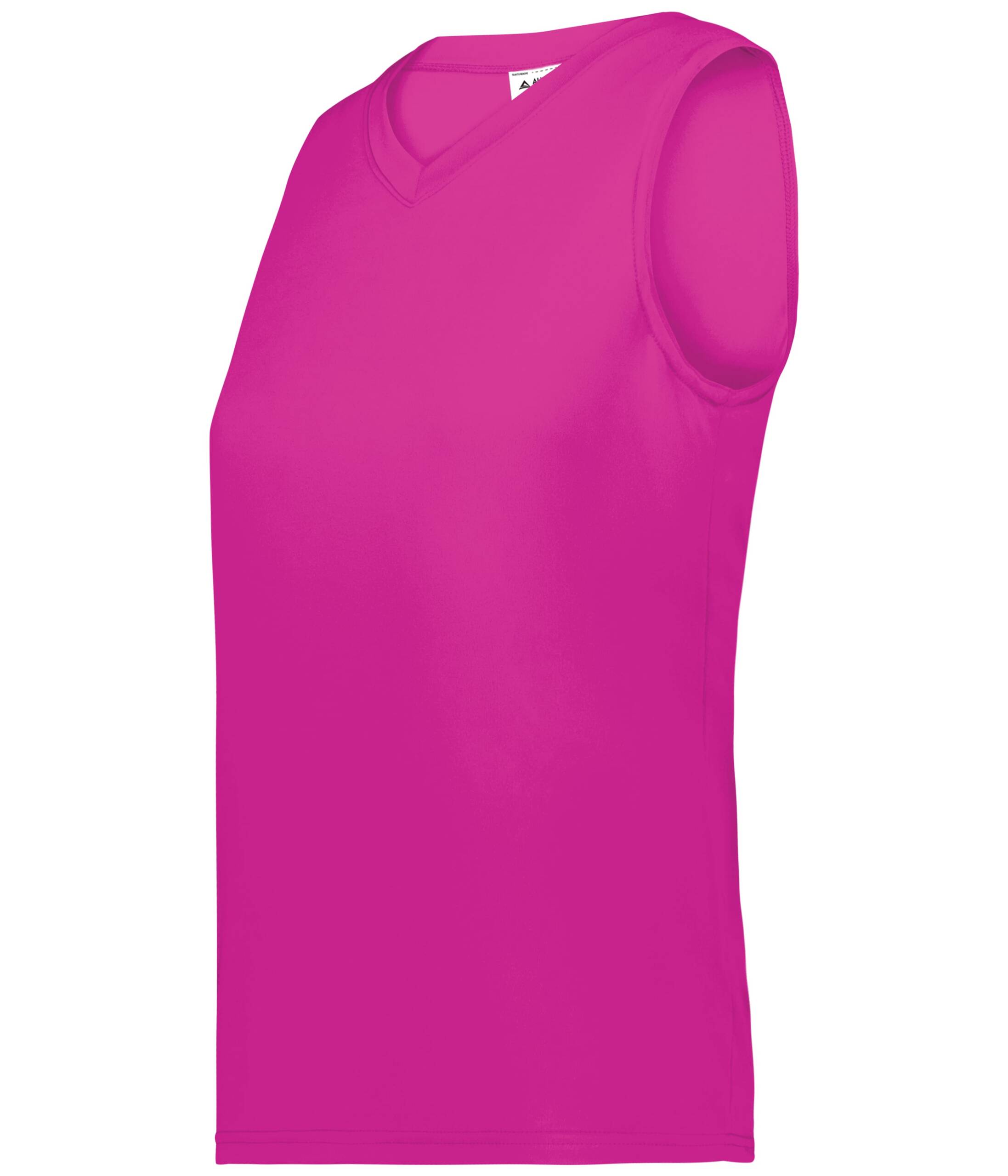 100% polyester wicking knit with color secure® technology that helps prevent dye migration * Wicks moisture * Tear away label * V-neck collar